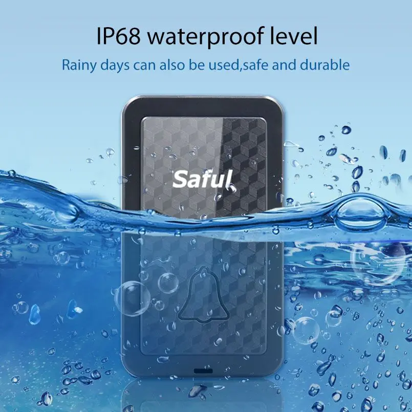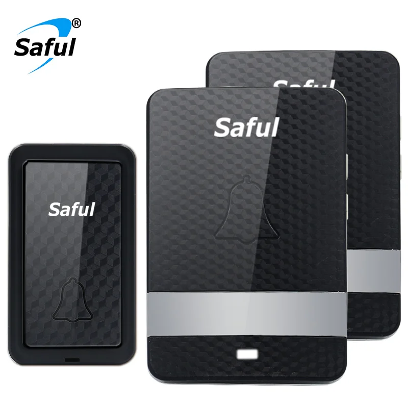 Saful Self-powered Waterproof Wireless Doorbell no battery New Black 1 Outdoor Push Button +2 Indoo